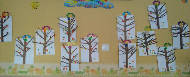 Роботи дітей на осінню тематику: "Веселі бджілки", "Осінь в саду", "Осіннє дерево2. Допомагала вихователька Дикунець Алла Іванівна